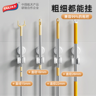 太力拖把壁挂夹吸盘挂钩整理架卫生间拖布扫把支架浴室神器安可视