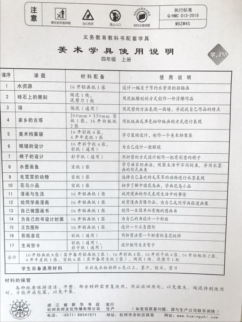 配套学具 美术 4四年级上册 浙江专用 美术学具 2025春 义务教育教科书 小学生实践操作材料包 浙美版