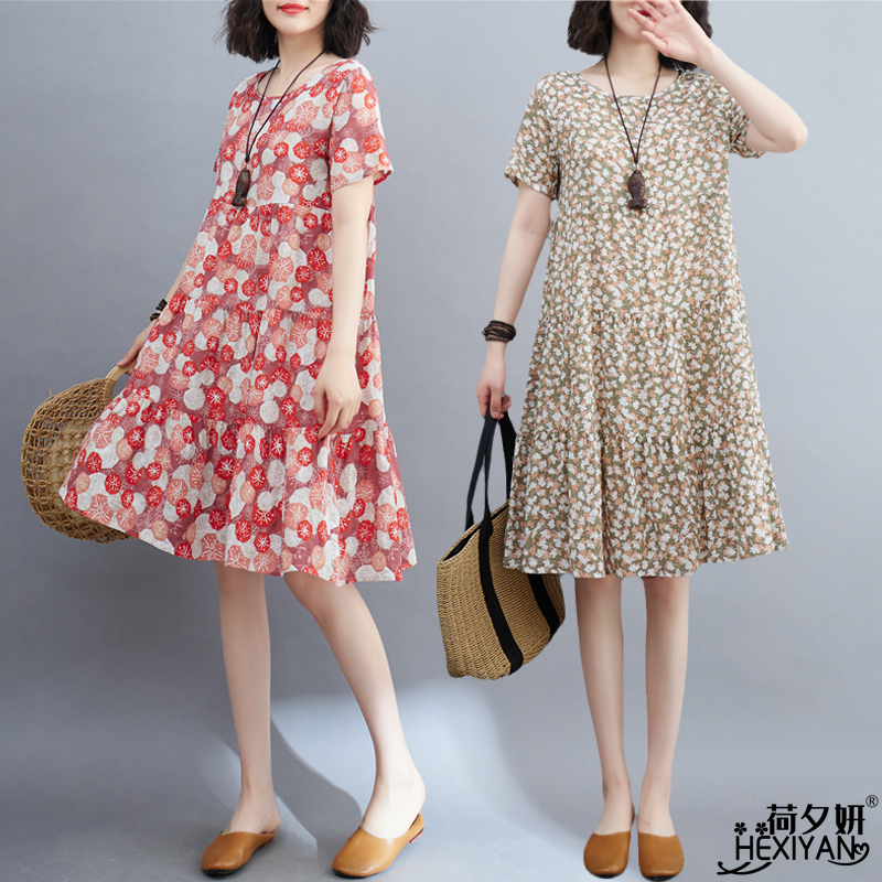 大码 宽松孕妇睡衣裙小个子碎花连衣裙家居服200斤 棉绸睡裙女夏季