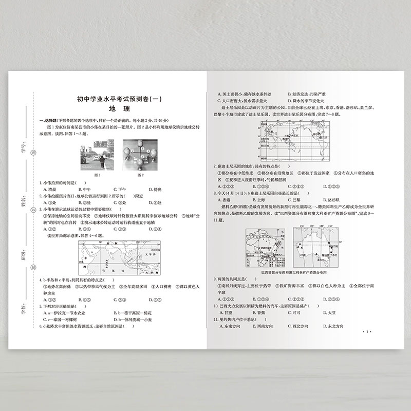 中考预测题地理生物会考真题配套人教版 总复习资料试卷测试卷全套2025真题卷初中生初二八年级晨记打卡生地分类知识点必刷题