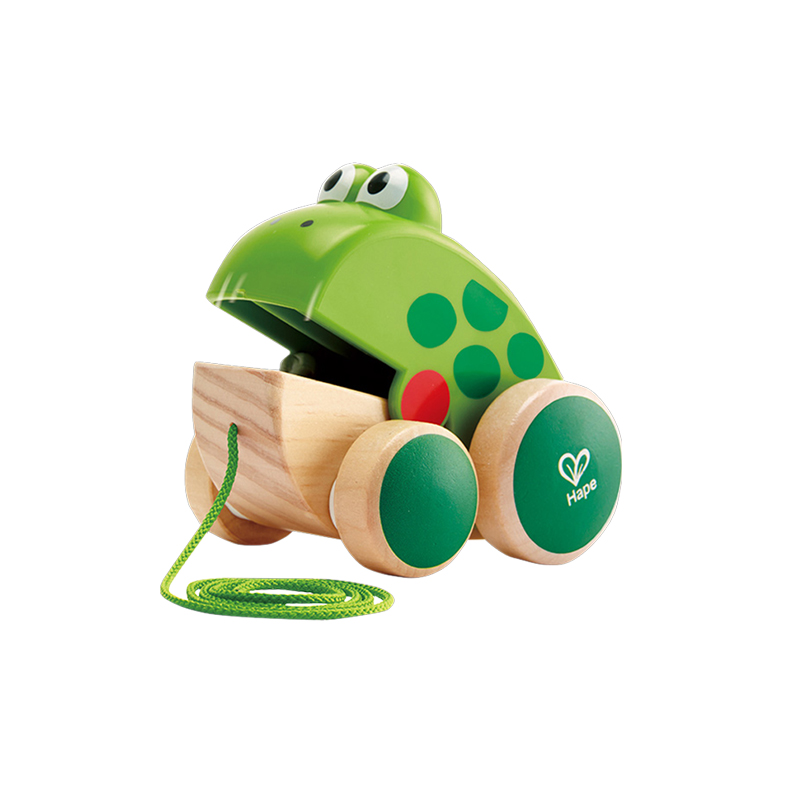 Hape拖拉青蛙儿童宝宝婴儿木制手拉拖绳学步益智玩具1岁 自营