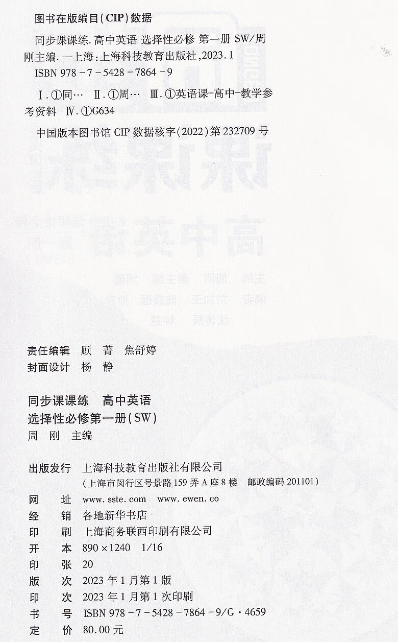 社 新教材配套教辅资料高二年级第二学期高2下上海科技教育出版 同步课课练高中英语SW版 选择性必修1第一册上海高中上外版