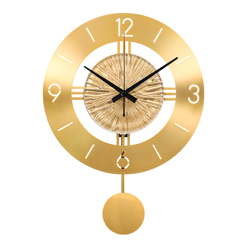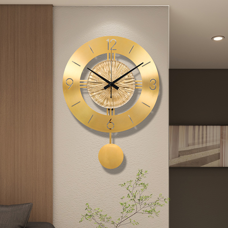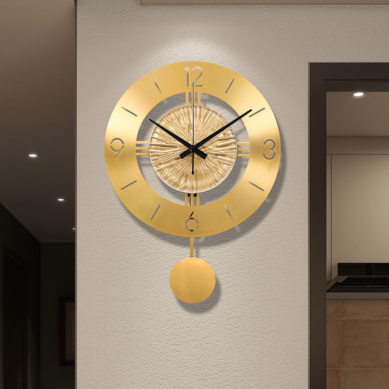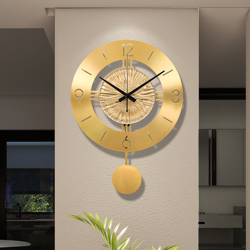 挂钟客厅现代简约时尚 饰钟表 高档黄铜时钟免打孔石英钟餐厅大气装