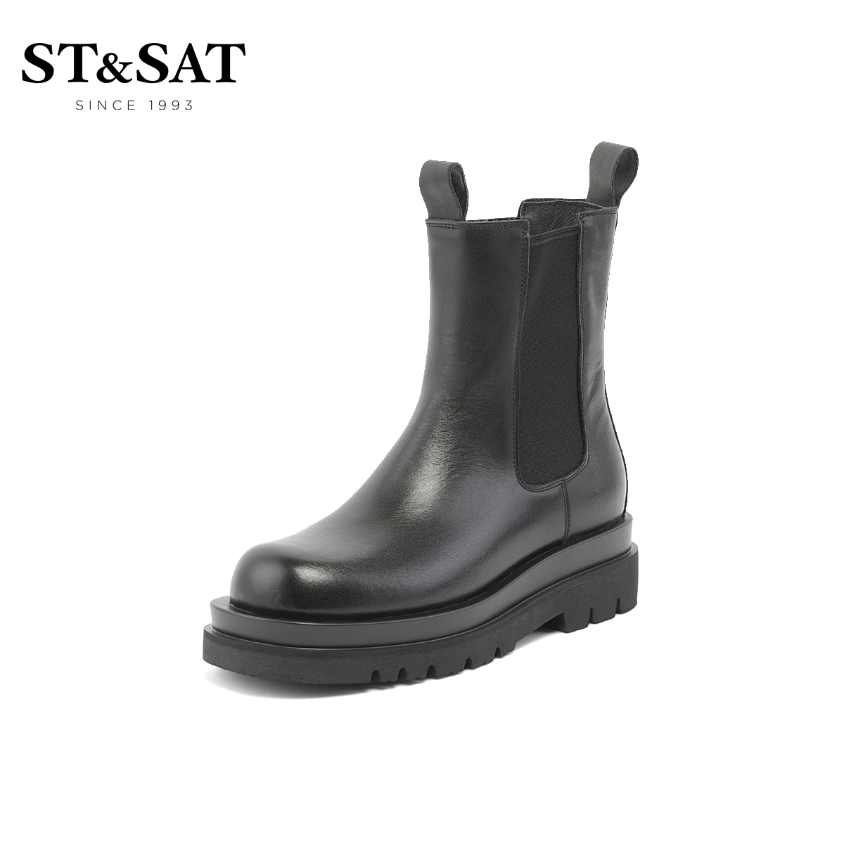 星期六潮流厚底烟筒靴秋冬英伦风切尔西靴女袜靴短靴 清仓短靴
