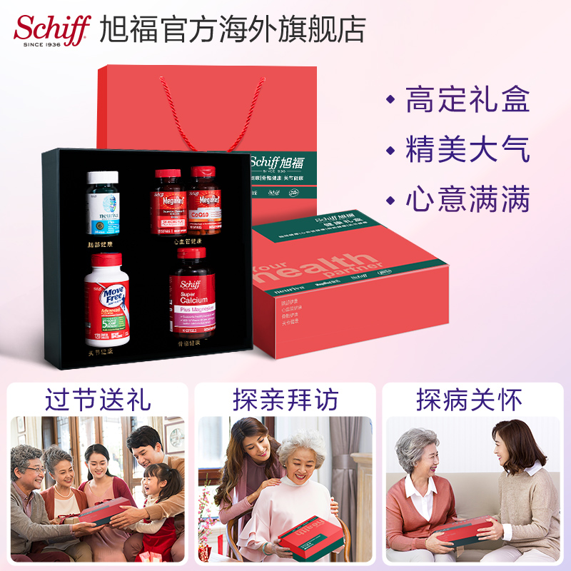 MoveFree氨糖软骨素加钙片中老年人护关节纯南极磷虾油旭福礼盒装