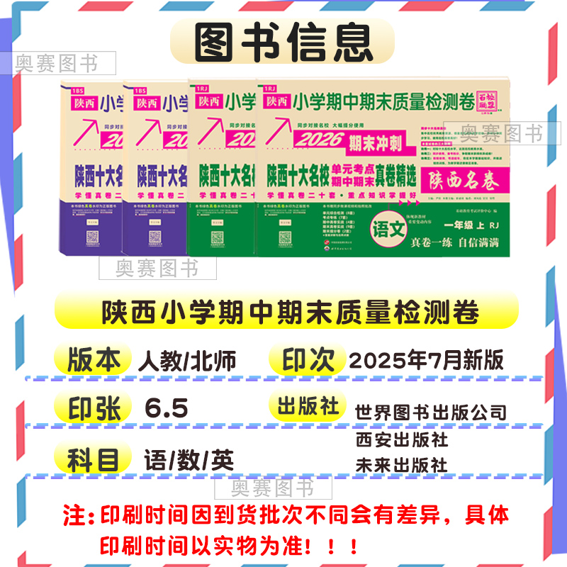 2026上册百校联盟陕西西安十大名校真卷一二三四五六年级上试卷语文人教版 数学北师大真题卷小学尖子生同步期中期末质量检测卷精选