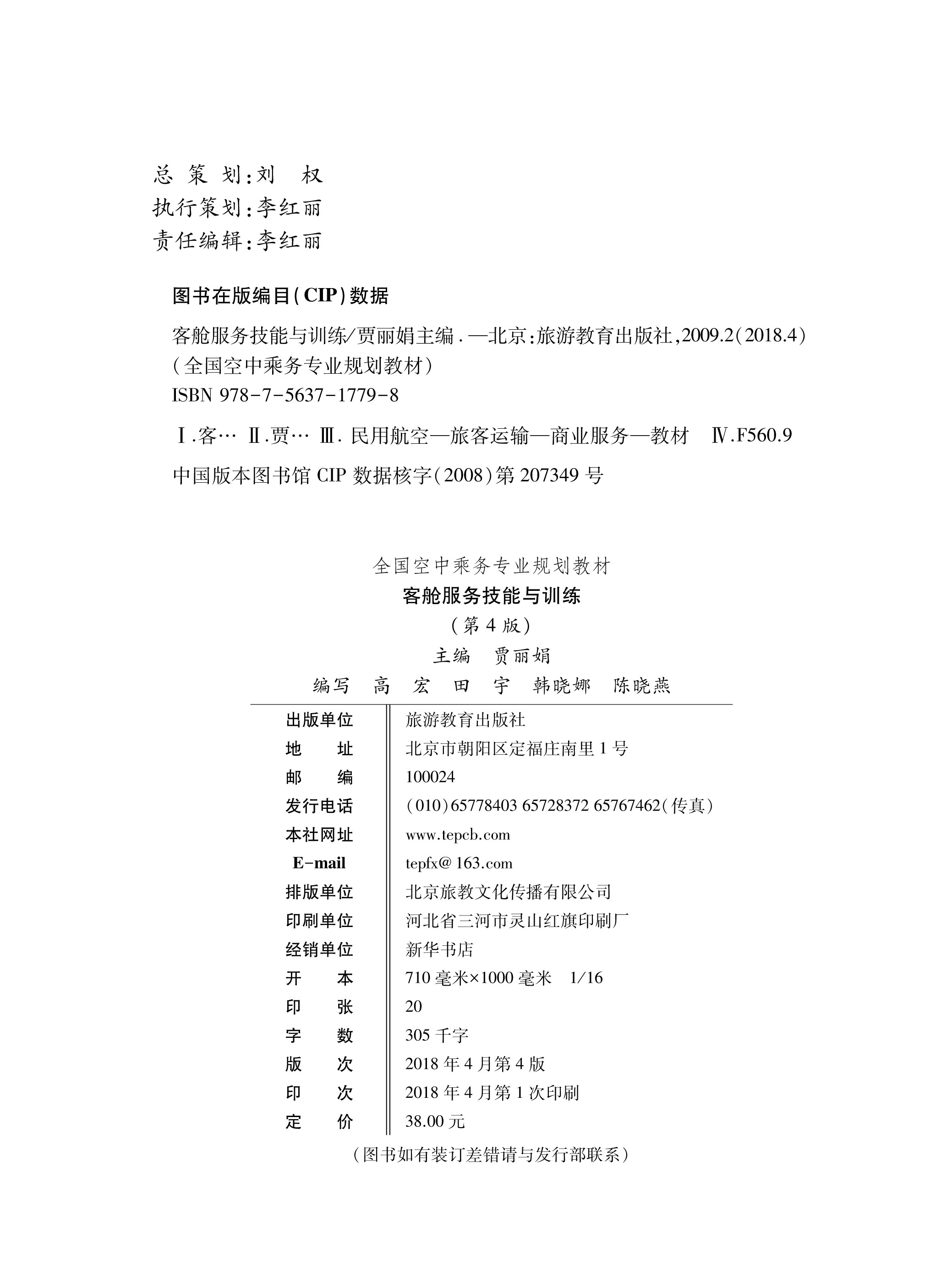 客舱服务技能与训练第4版 社 2018年9787563717798全国空中乘务专业规划教材空乘教材贾丽娟主编旅游教育出版
