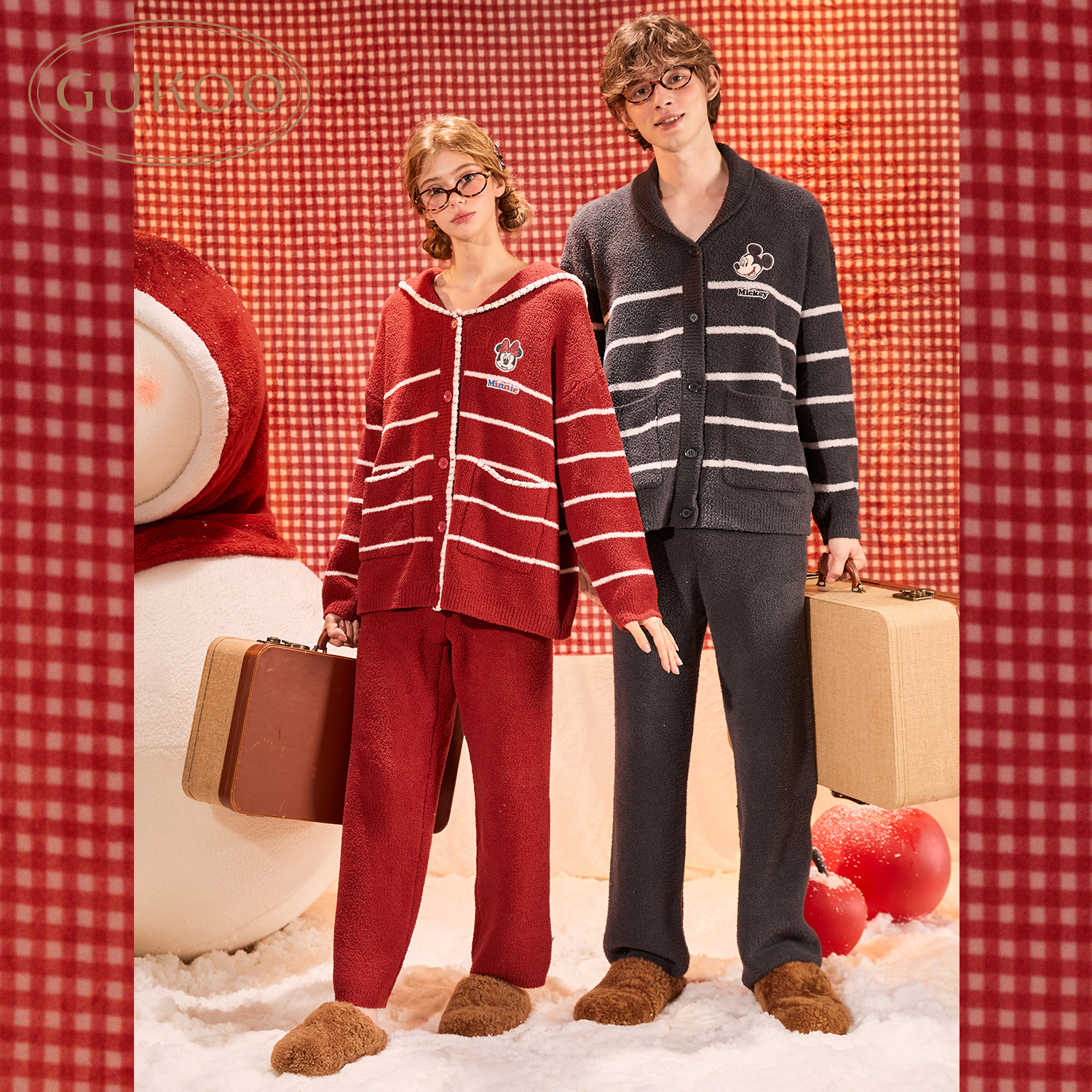 半边绒男家居服套装 迪士尼睡衣女新年款 果壳情侣睡衣冬季 Gukoo