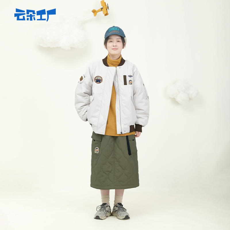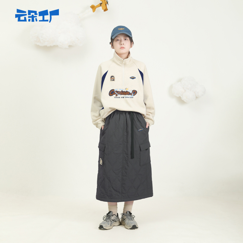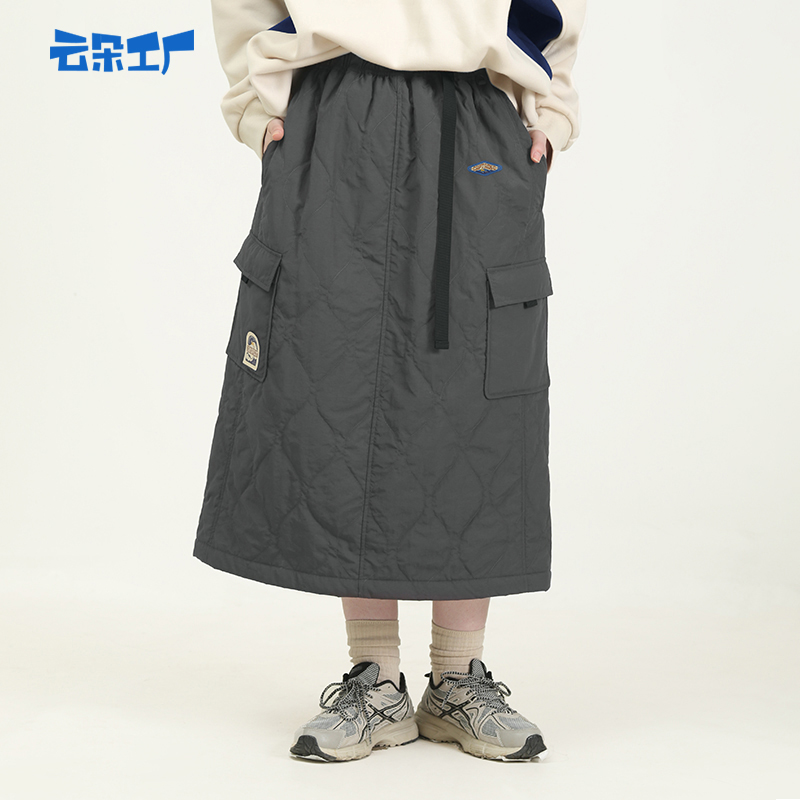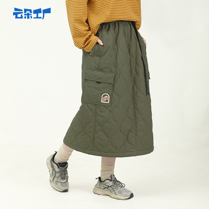 云朵工厂飞行员绗棉半身裙加棉保暖多口袋A型工装 半裙冬季