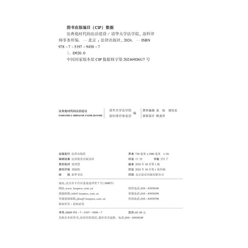 法治建设 法典化时代 清华大学法学院 盈科律师事务所 社9787519794507 正版 法律出版 2024新书