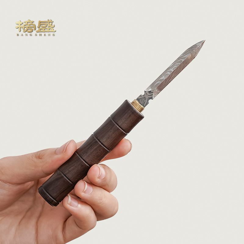 榜盛黑檀木大马士革茶刀高端实木功夫茶具配件撬茶工具开茶器茶锥