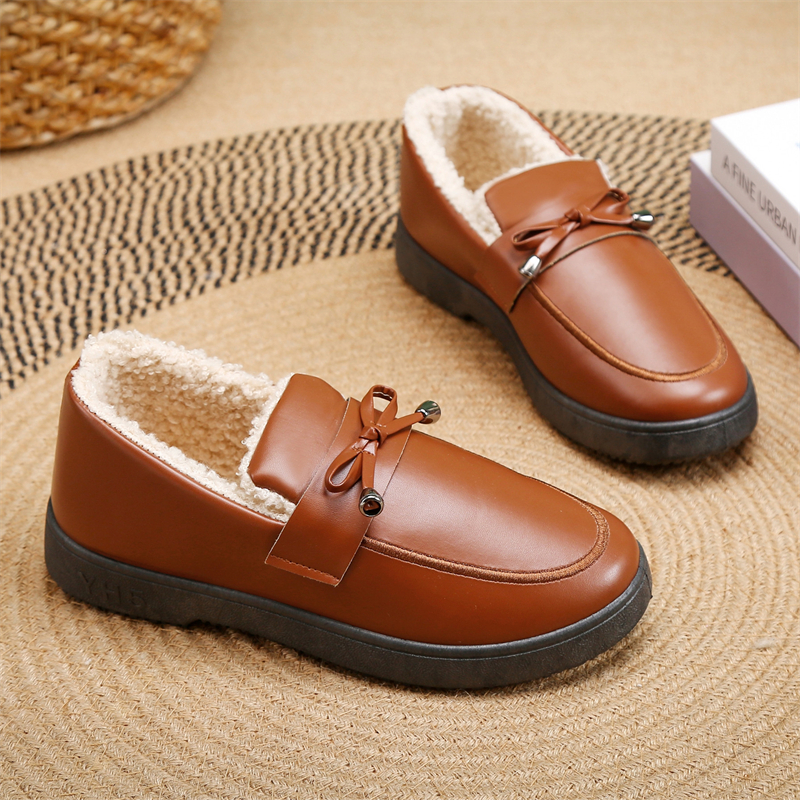 女皮面耐脏加绒保暖厚底防滑居家室内情侣妈妈棉鞋 冬季 老北京棉鞋