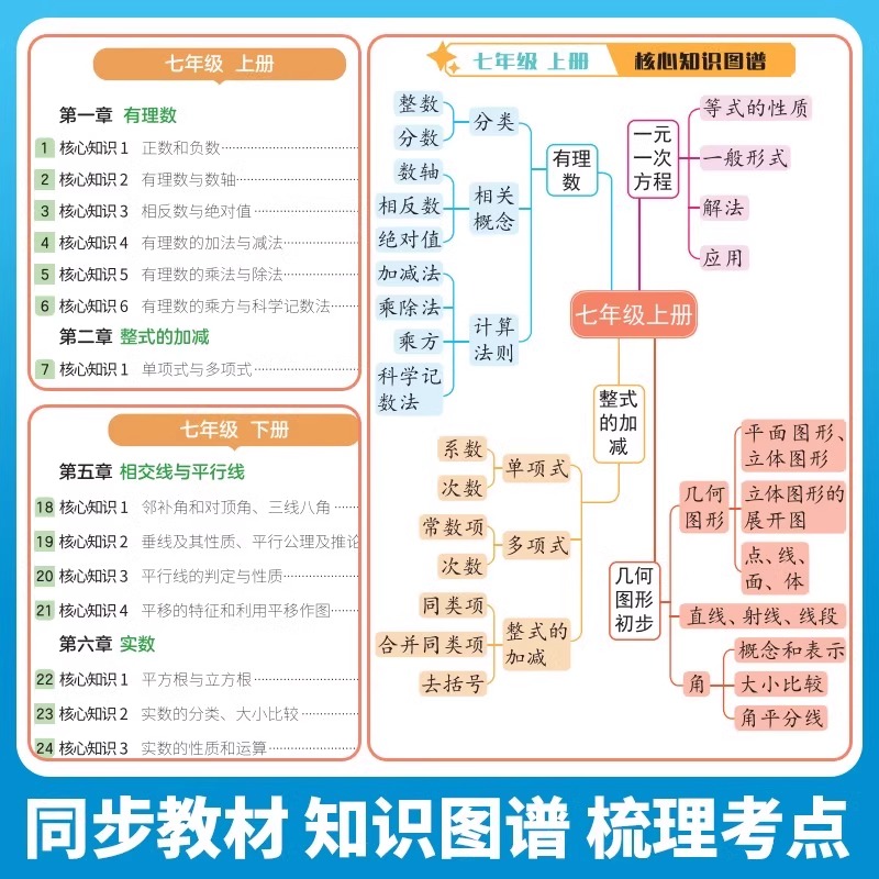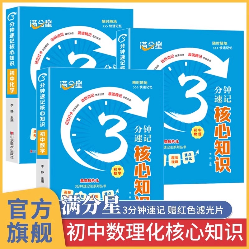 满分星 初中必背知识点概念定理手册总结 3分钟速记核心知识 大全口袋书 趣味漫画思维导图速记核心考点一本全 初中数理化公式