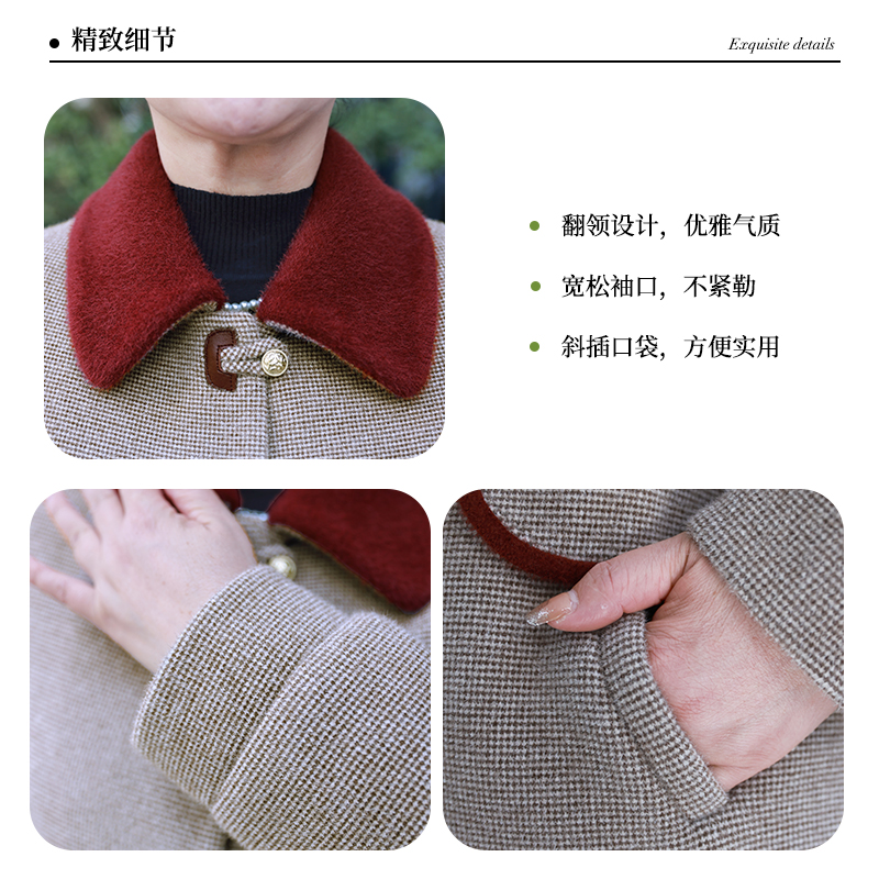 小香风翻领短款 妈妈装 江南故事时尚 大衣加厚外套 清仓不退不换