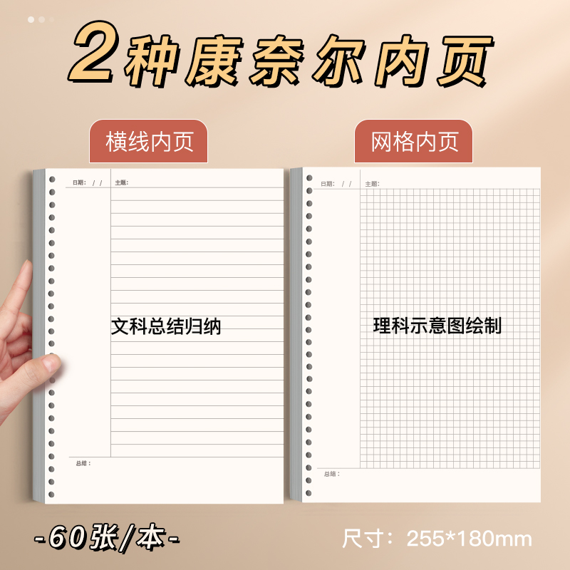 B5活页康奈尔笔记本本子备考学习考研大学生专用加厚记事本5r记忆法复习考公数学课堂记录本课堂高颜值大本子