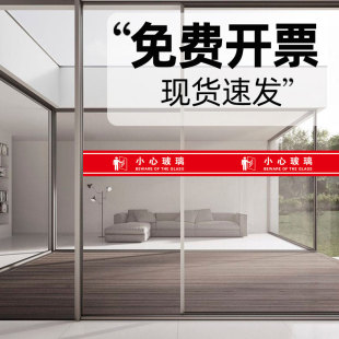 小心玻璃提示贴玻璃门腰线贴商场酒店超市小心台阶地滑地贴推拉门防撞条提示贴标语注意玻璃防撞贴纸