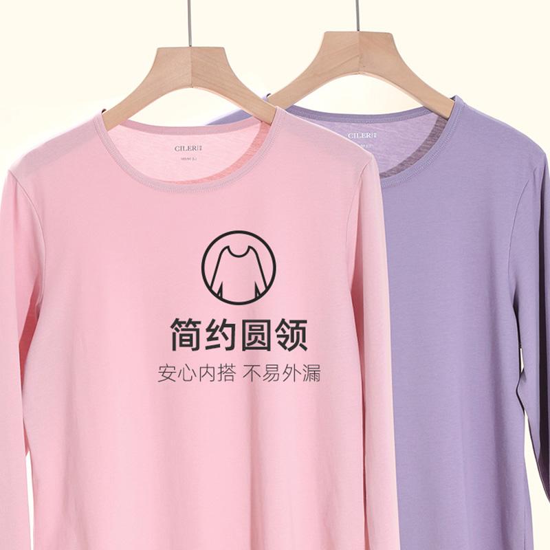 大码 仕乐纯棉素色内衣套装 女士圆领线衣线裤 基础打底秋衣秋裤 薄款