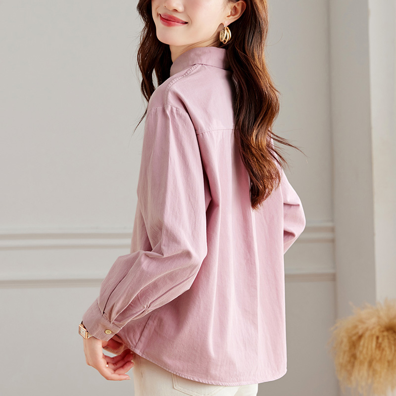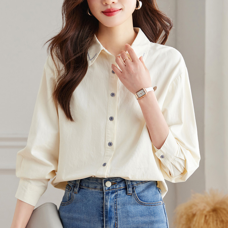100%棉 OL风翻领正装 POLOWALK长袖 女士秋冬新款 白色衬衣女 衬衫
