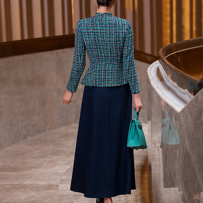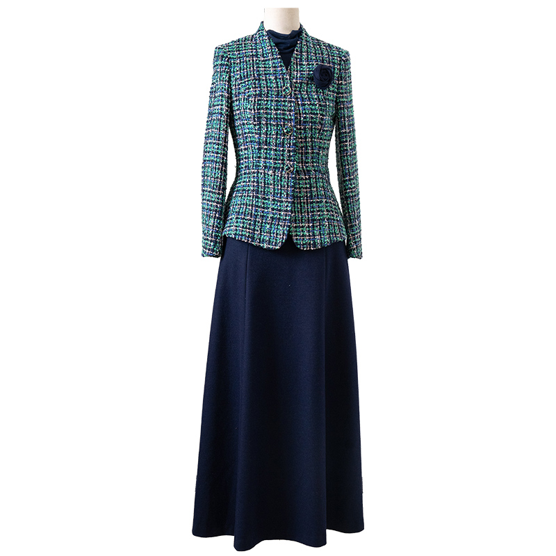 端庄大气时尚 新款 毛呢连衣裙两件套 女2024冬季 蓝色气质小香风套装