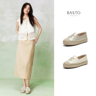 单鞋 百思图25秋新款 女松糕鞋 厚底乐福鞋 B0515CA5 一脚蹬草编渔夫鞋