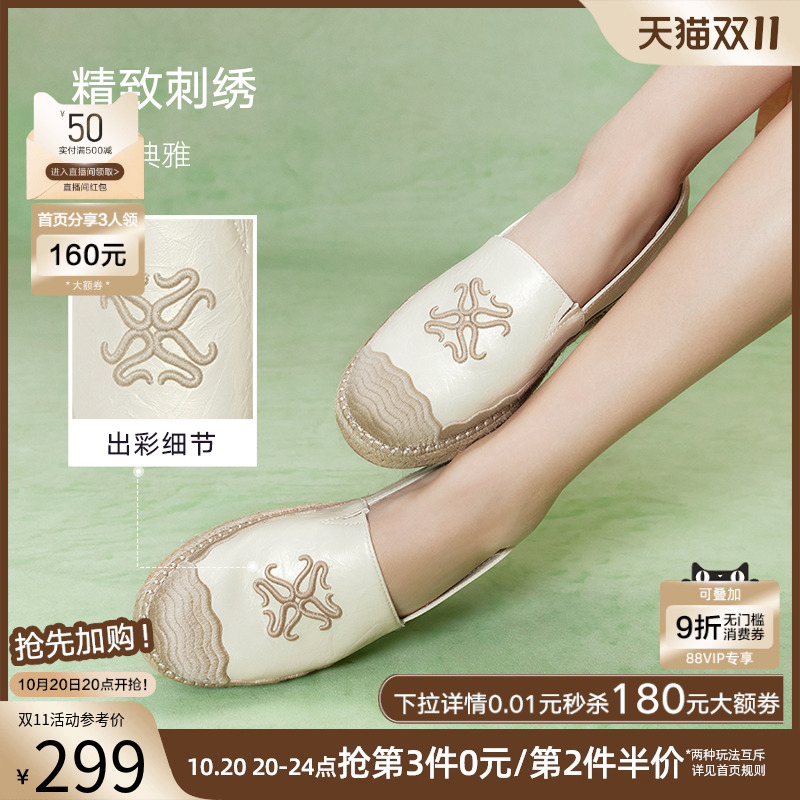 休闲平底鞋 小燕麦渔夫鞋 9UA37AA5 小碎金大麦鞋 思加图2025新款
