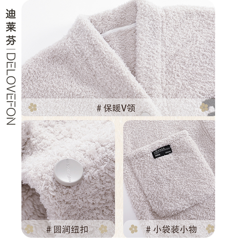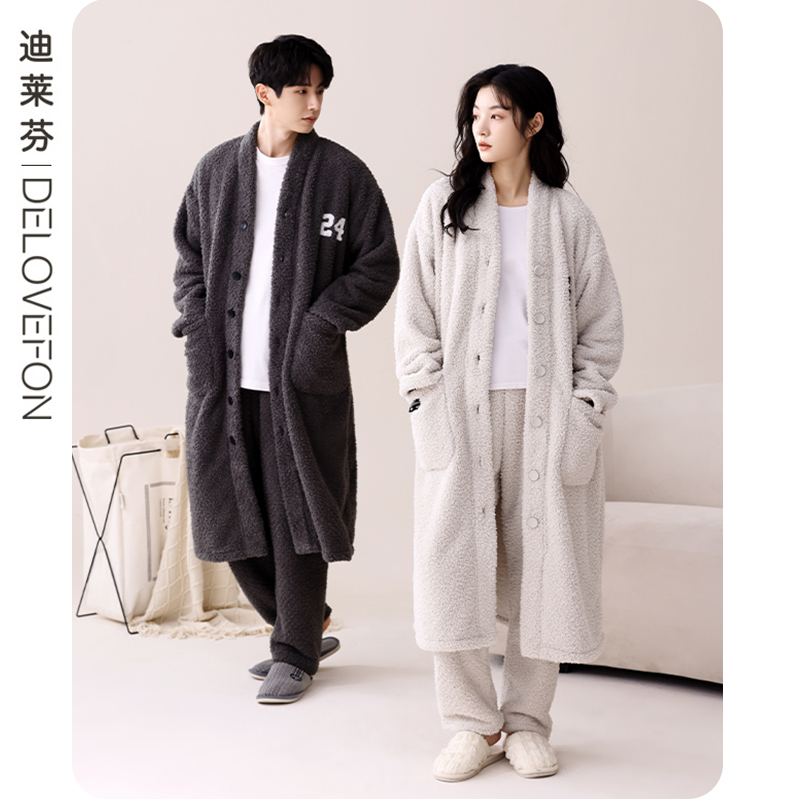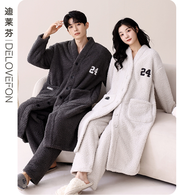 情侣睡袍女秋冬加长加厚半边绒珊瑚绒家居服男浴袍套装 抗静电