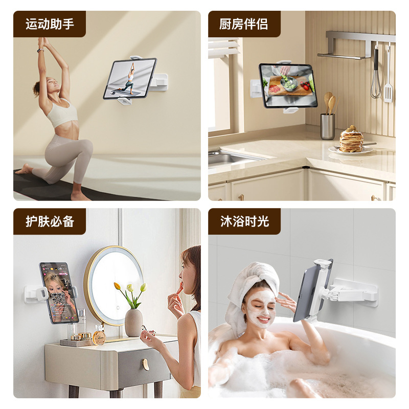 magnote适用手机iPad平板通用墙壁支架厨房做菜电视追剧懒人神器粘贴式 折叠支架 免打孔浴室卫生间厕所壁挂式