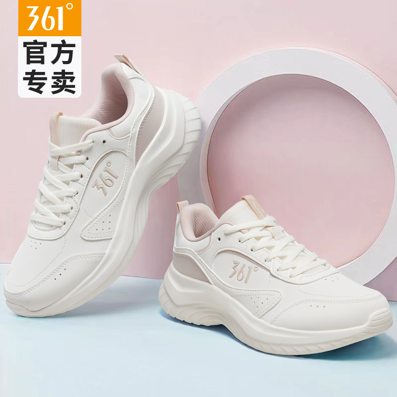 运动鞋 轻便减震休闲百搭小白鞋 女款 跑步鞋 防水皮面秋冬季 361女鞋