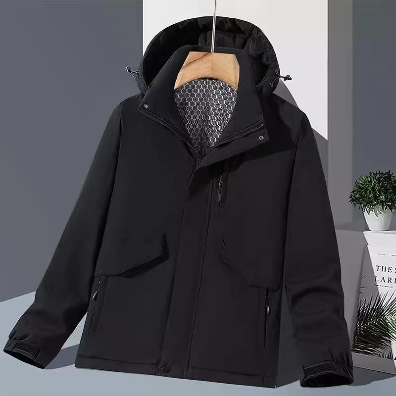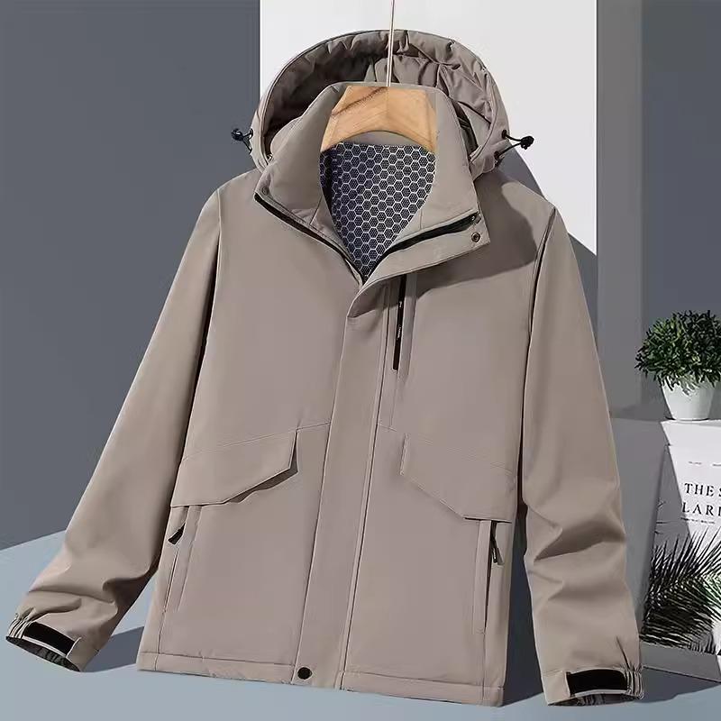 冲锋衣男加绒加厚秋冬季 外套中老年人棉衣男 中年保暖棉服爸爸冬装