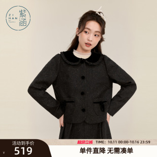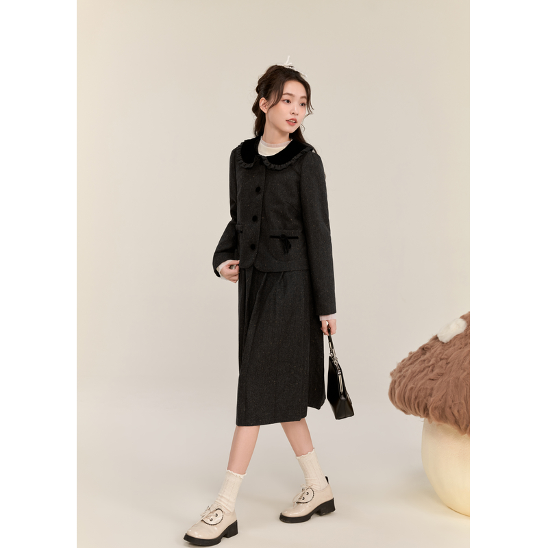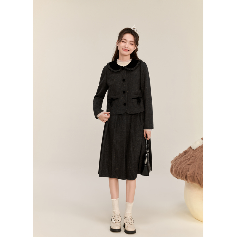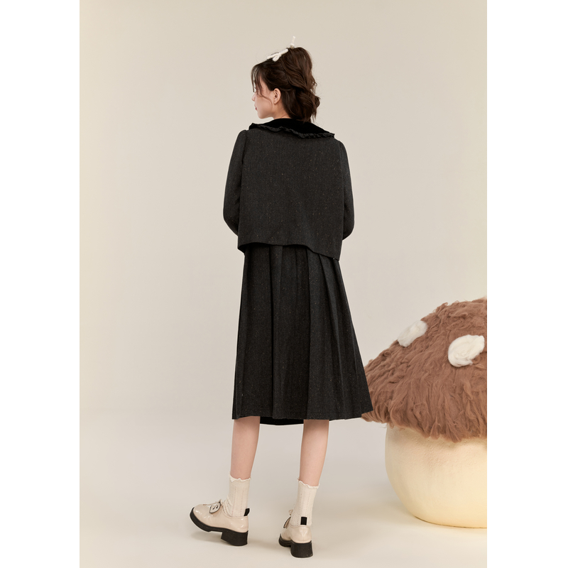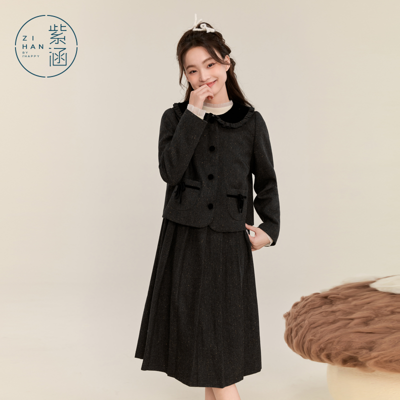 新款 女冬季 背心a字连衣裙两件套装 紫涵小香风翻领羊毛呢外套修身