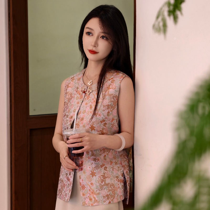 外套上衣 减龄百搭无袖 棕色宽松复古圆领pu皮衣马甲背心女秋季 新款