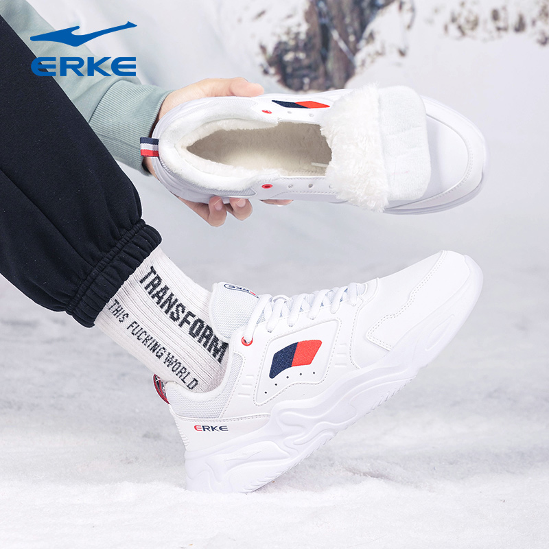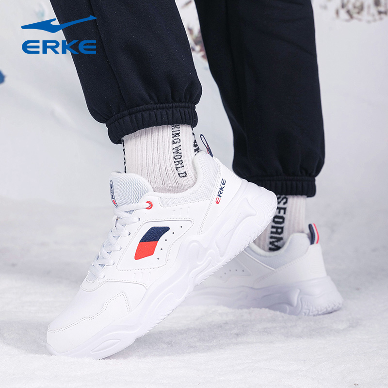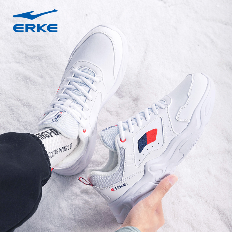 秋冬新款 轻便跑步鞋 女鞋 增高鞋 革面百搭休闲鞋 鸿星尔克舒行运动鞋