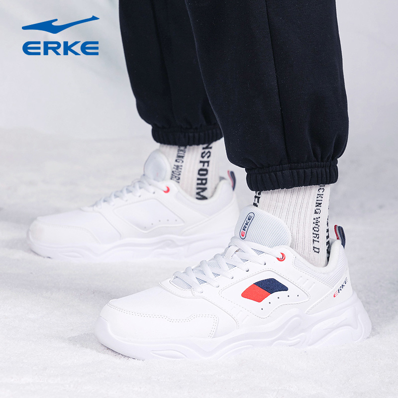 跑步鞋 鸿星尔克男鞋 轻便网面透气老爹鞋 桀骜皮面秋冬休闲鞋 运动鞋