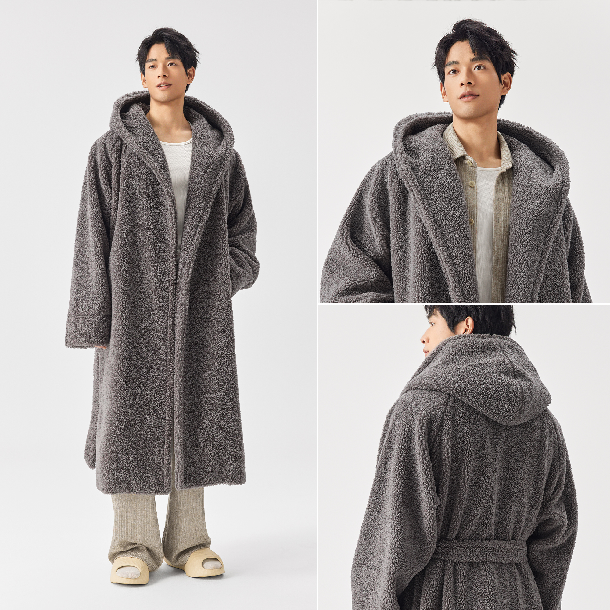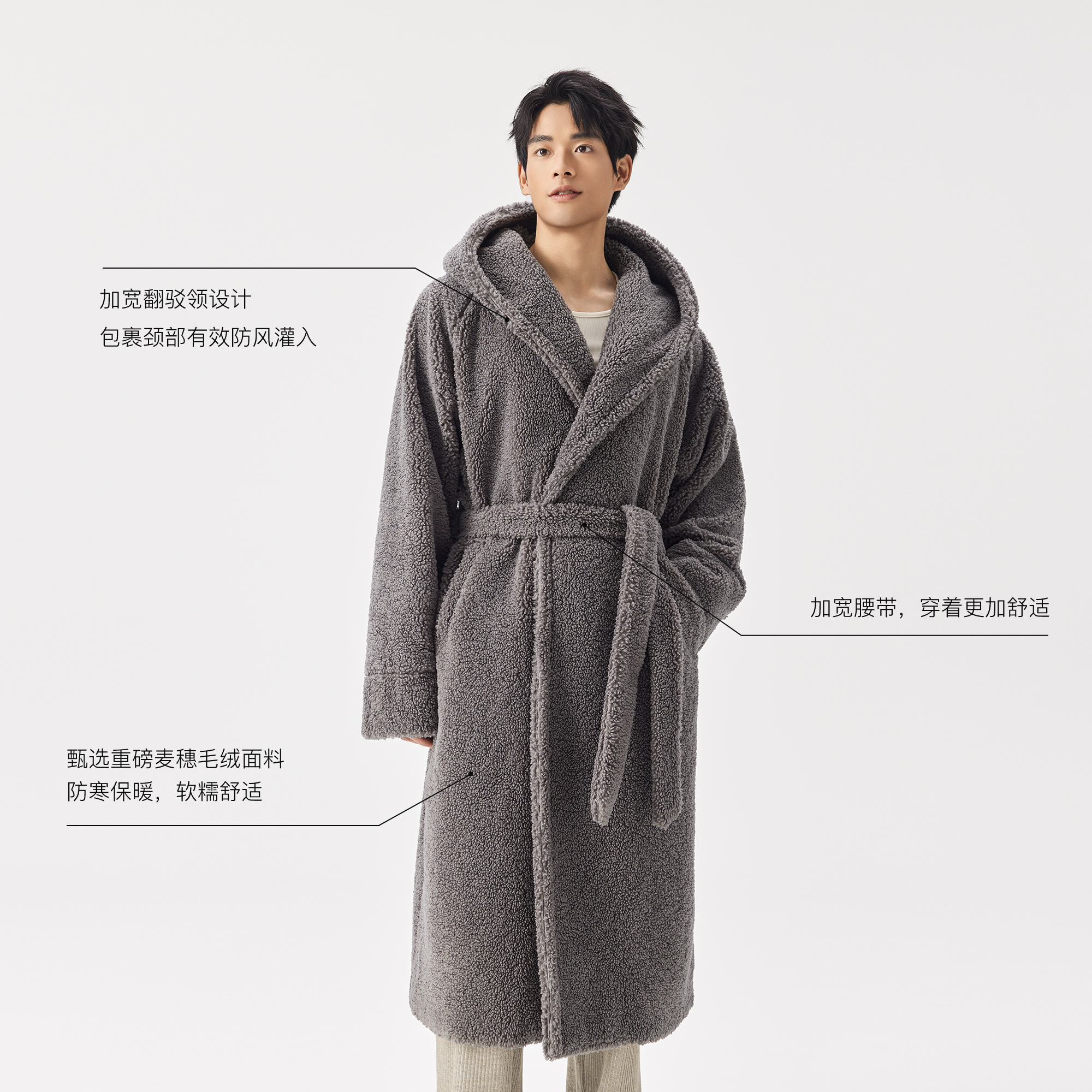 BODYDREAM 宽松休闲系带连帽睡袍 BM重磅加绒加厚可外穿浴袍男冬季