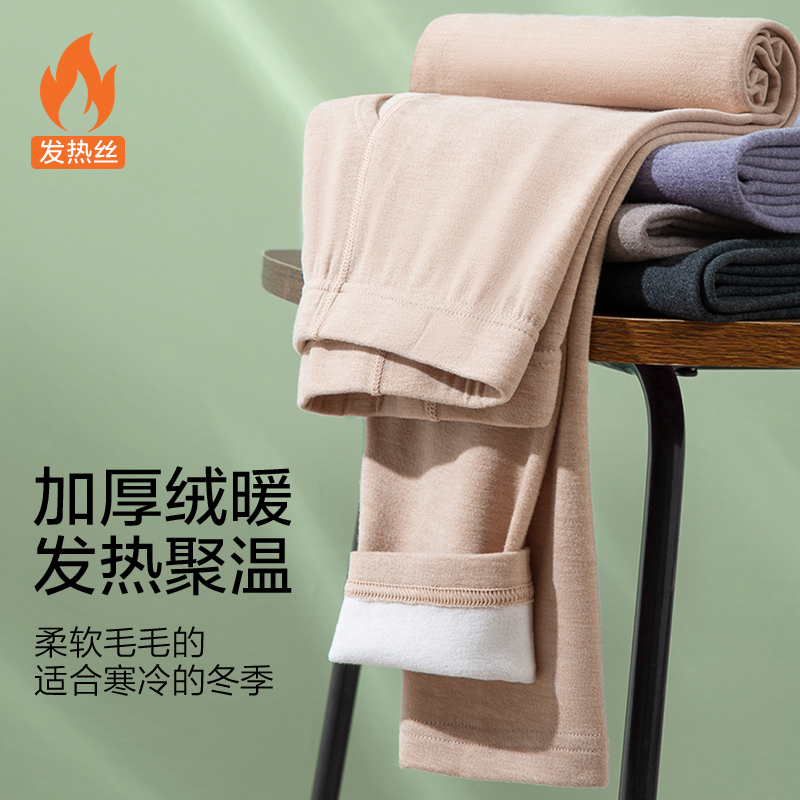 发热蚕丝打底裤 鸭鸭德绒保暖裤 加绒高腰线裤 秋裤 女士内穿紧身冬季
