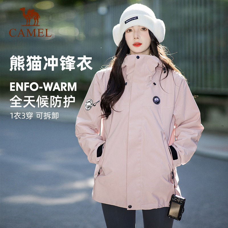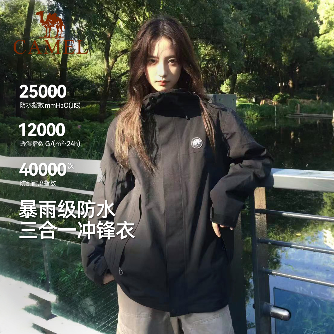 骆驼女装 外套 冲锋衣女春秋抓绒内胆防风防水三合一可拆卸夹克短款