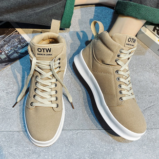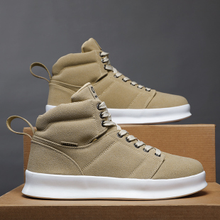 秋冬高腰青少年厚底学生运动休闲高帮潮鞋 板鞋 潮牌男士 卡其色个性