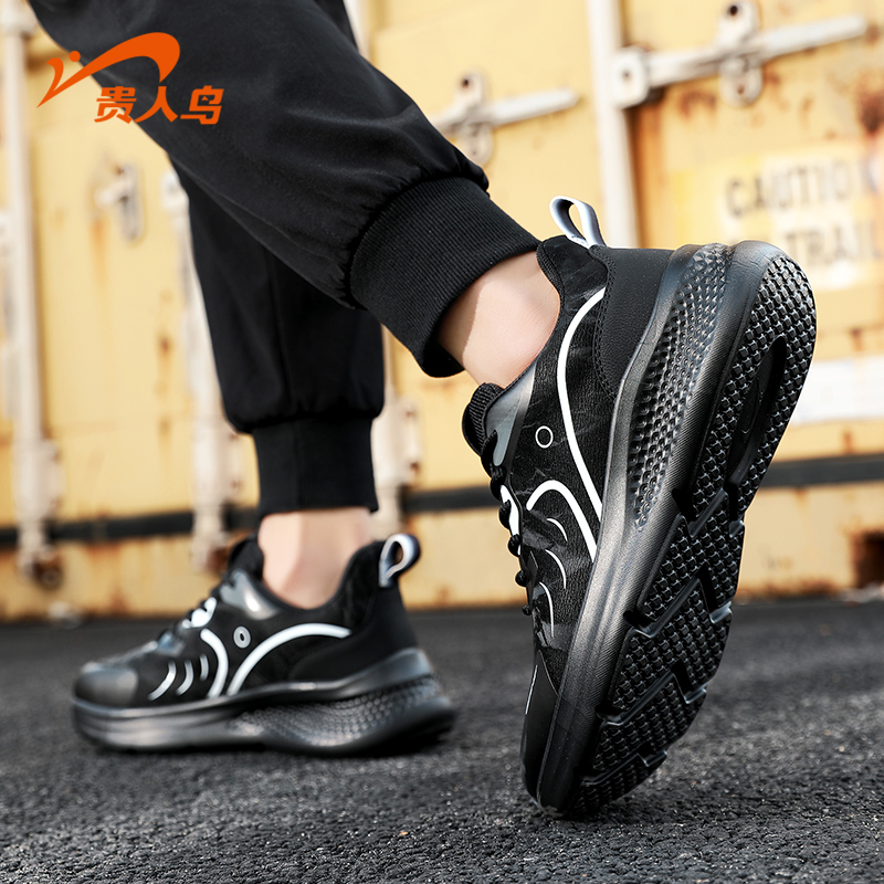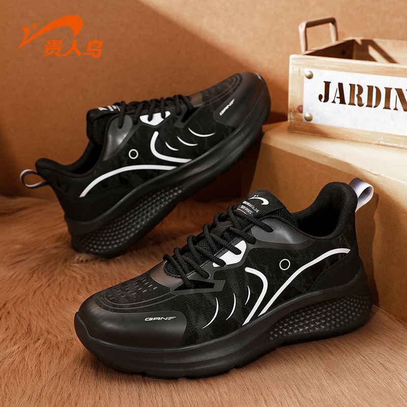 男鞋 新款 软底跑步鞋 网面透气休闲鞋 鸿星尔克运动鞋 黑色爸爸鞋 秋季