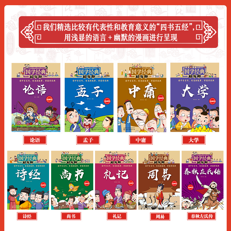 中国传统文化国学经典 小学生课外阅读 超有趣 故事 教育读本 漫画版 阅读必读课外书 小学生国学经典 四书五经 国学经典 9册