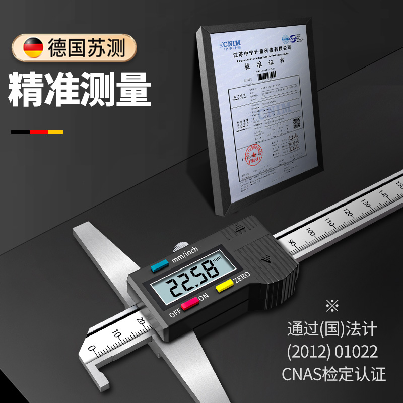 德国苏测数显单钩深度尺内沟高精度深度尺带钩勾头不锈钢沟槽卡尺