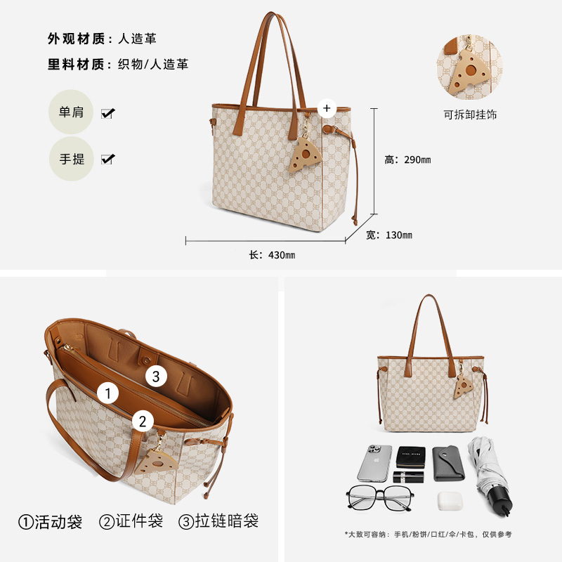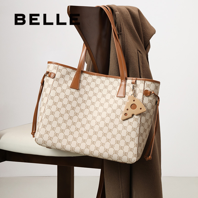 百丽包包女新款 复古老花手提包老花大容量通勤包托特包X9040AX3