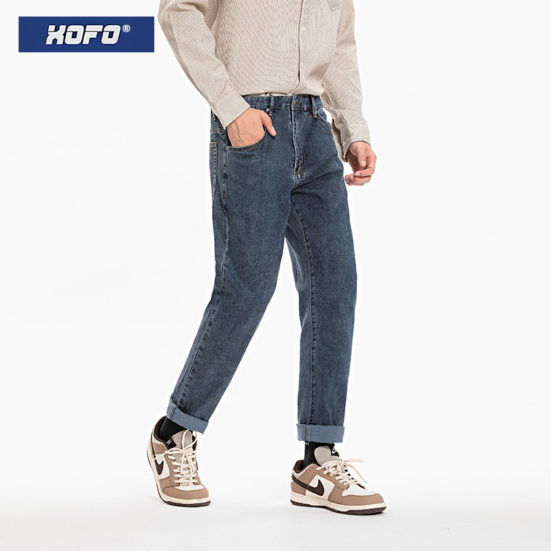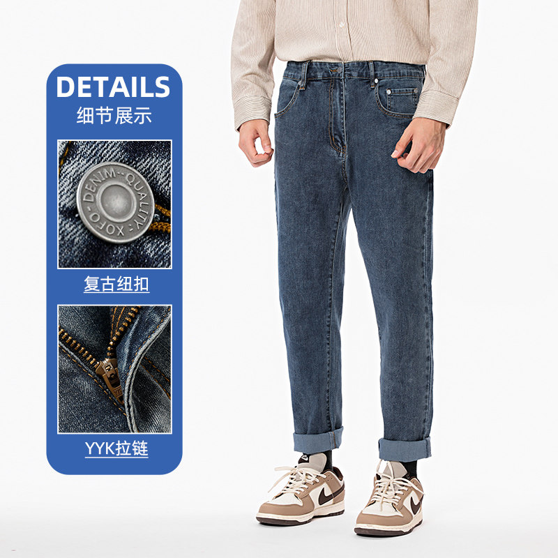 宽松直筒休闲弹力水洗长裤 秋新款 子潮流舒适 男款 深蓝色牛仔裤
