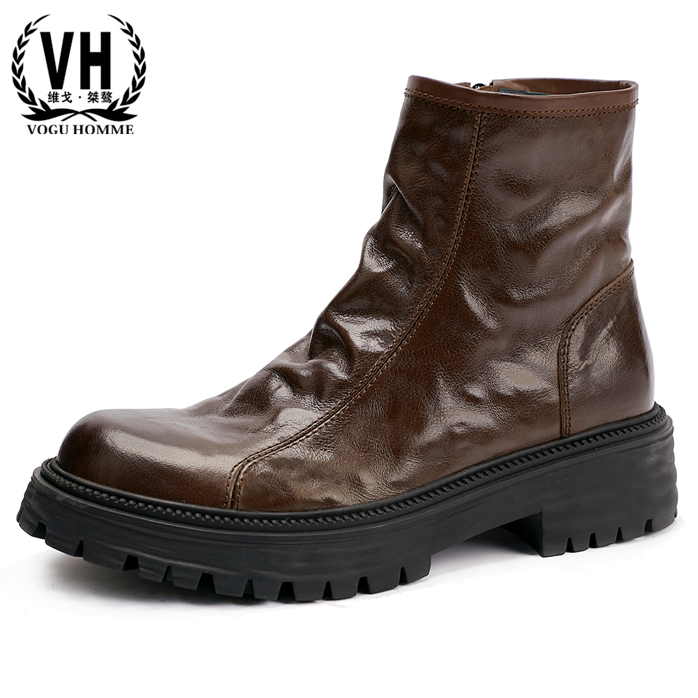 马丁靴男2025秋冬款 靴拉链中帮切尔西靴潮流靴子 真皮高帮厚底工装