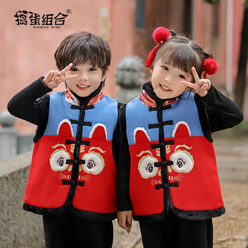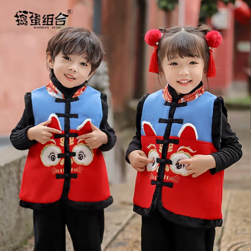 男童唐装 中国风马甲秋冬外套宝宝周岁礼服加棉洋气拜年服新年汉服