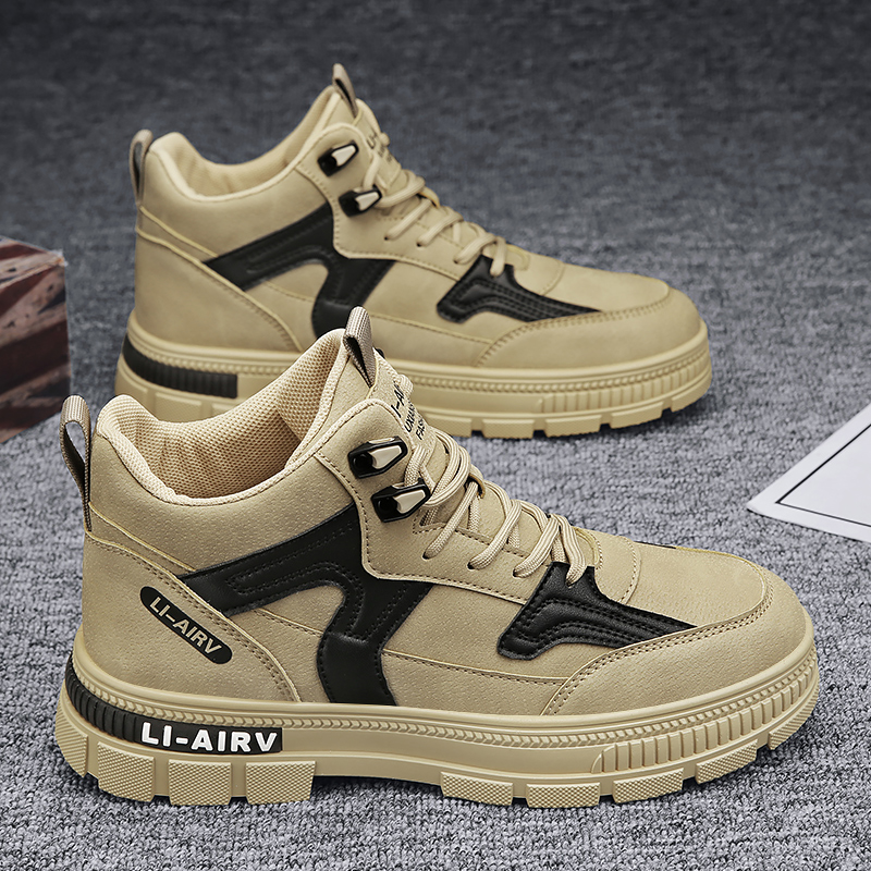 靴子 真皮防水厚底增高工装 森马马丁靴男秋季 高帮百搭休闲白色板鞋