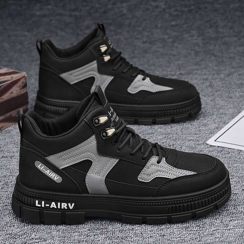 运动鞋 高帮休闲鞋 秋冬新款 子学生厚底男鞋 皮面鞋 征服鸿星尔克板鞋