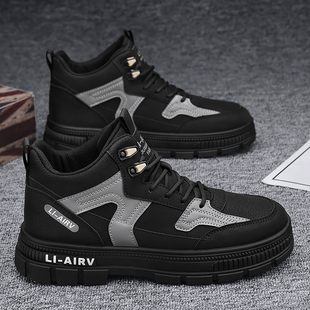 男鞋 子学生运动鞋 新款 皮面鞋 秋冬高帮休闲鞋 电池熊猫鸿星尔克板鞋