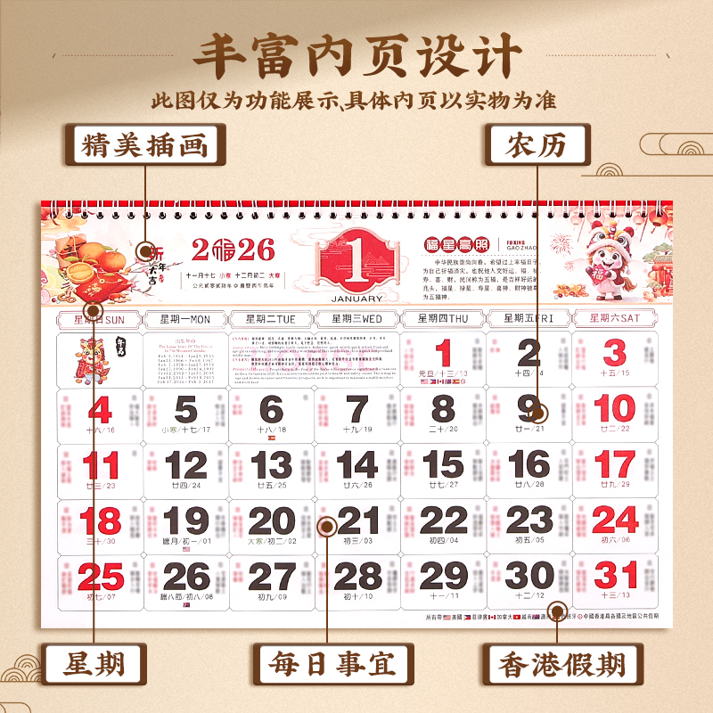 挂历2026年新款 挂历 福牌定制公司保险企业文化宣传广告礼品日历月历定做创意家用挂墙马年挂历订制2025年新款