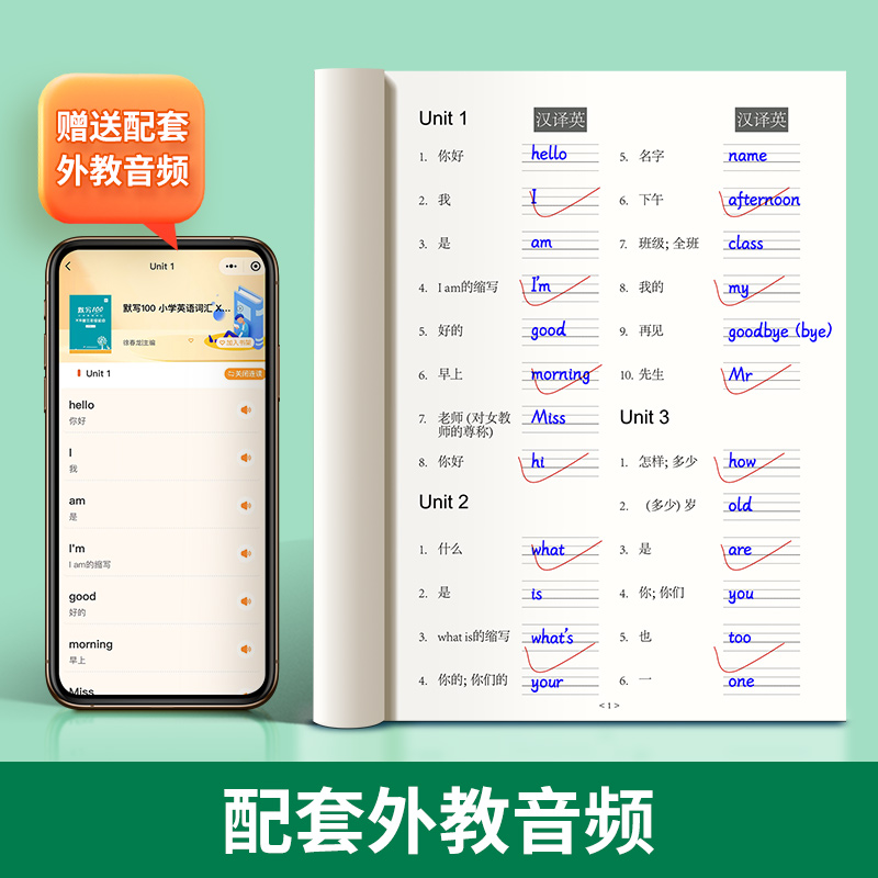 三年级起点单词句子默写本词汇听写本单词手册记忆本英语本作业寒假衔接 默写100小学英语湖南湘少版 易蓓
