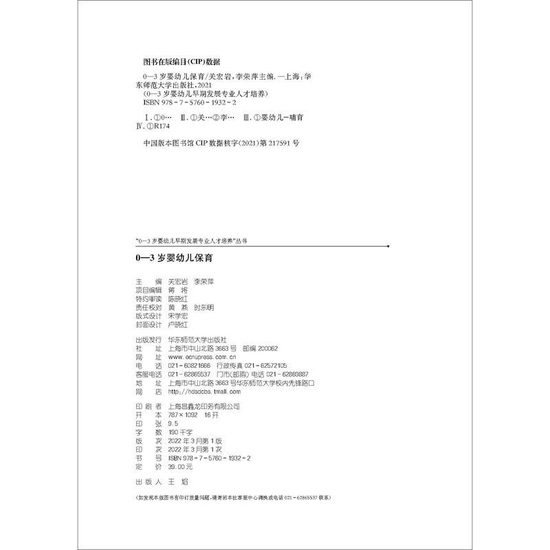 3岁婴幼儿保育 9787576019322华东师范大学出版 3岁婴幼儿早期发展专业人才培养 李荣萍 社 .关宏岩